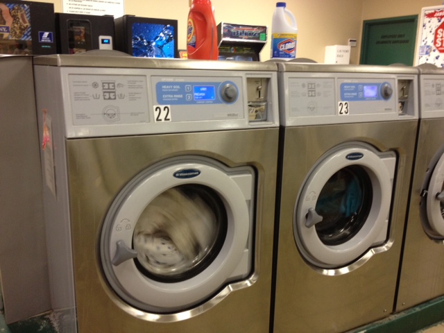 I turned a $20 bill into 80 quarters. I measured out detergent and realized that I had forgotten how nice soap smells. I loaded the triple loader washers and locked the handles for the 34 minute cycle. I watched the suds roll and the clothes spin. I connected my phone to the free Wi-Fi.