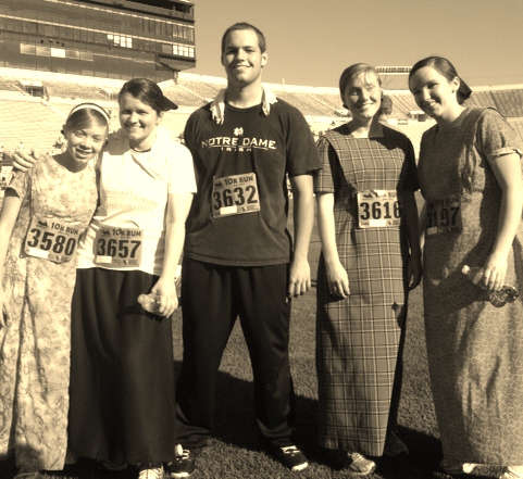 Saturday, June 2, 2012, four friends and I run the Sunburst 10K. We pour across the finish line in historic Notre Dame stadium with about 8,000 other people, a majority of whom run the shorter 5K. Some run the half marathon, and the bravest of the brave run the full marathon.